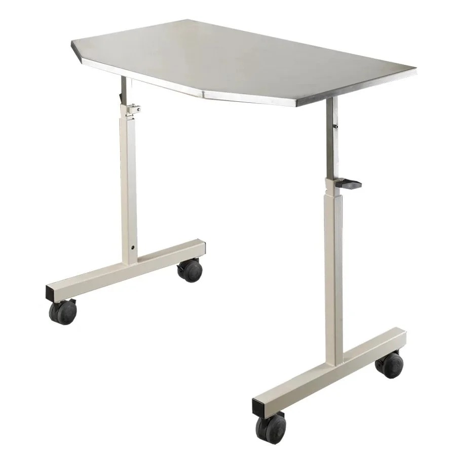 Standard Features: All-steel frame Stainless steel work surface Manual height adjustment 24" X 39" work surface Radius corners Four (4) dual-wheel locking swivel casters Height adjustment range 31.25" to 51.75" Internal distance between legs: 34.75" Frame and legs: Putty or Black Optional Features: Shelf Attachment