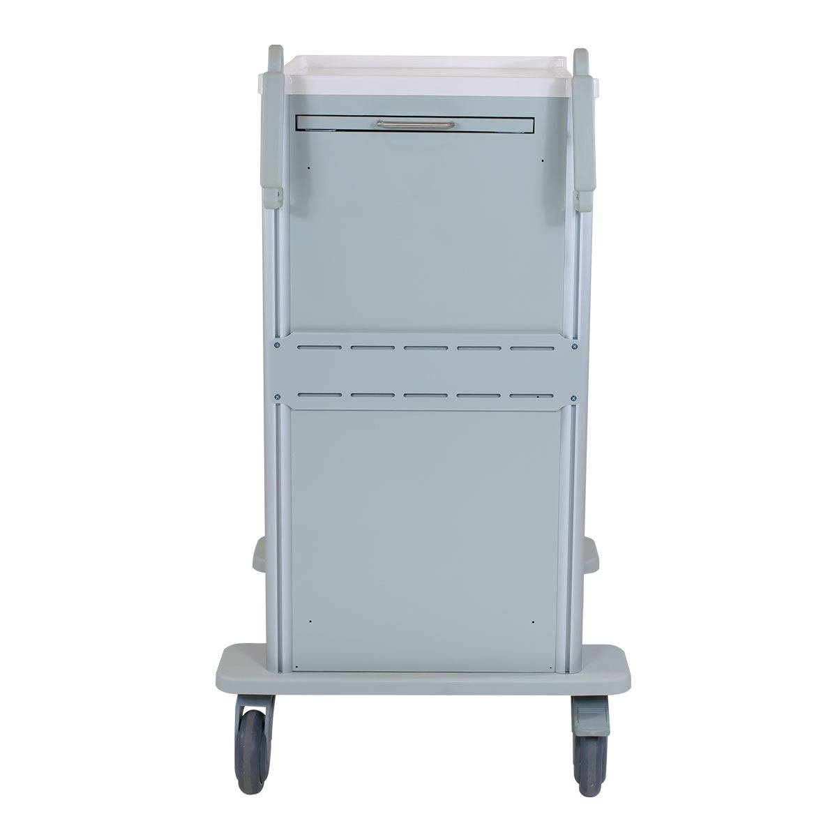 The Endodontic Supplies Cart is constructed with a lightweight aluminum and all the features you need: aseptic surfaces for easy cleaning, sectioned drawers for intuitive organization, and a sleek, contemporary appearance. Standard Features: A removable plastic top designed for easy cleaning, in addition to dual slide-out surfaces for added work space. 5” easy-rolling wheels for smooth transit from patient to patient. Wheels lock for stability. Durable, scratch-resistant, nylon-reinforced polycarbonate bumper protects the cart’s wheels and exterior from wear and tear over time. Auto-closing, ball-bearing drawers. Features four 3” drawers, one 6” drawer, and one 9” drawer. Dimensions: 29” x 24.5” x 42”