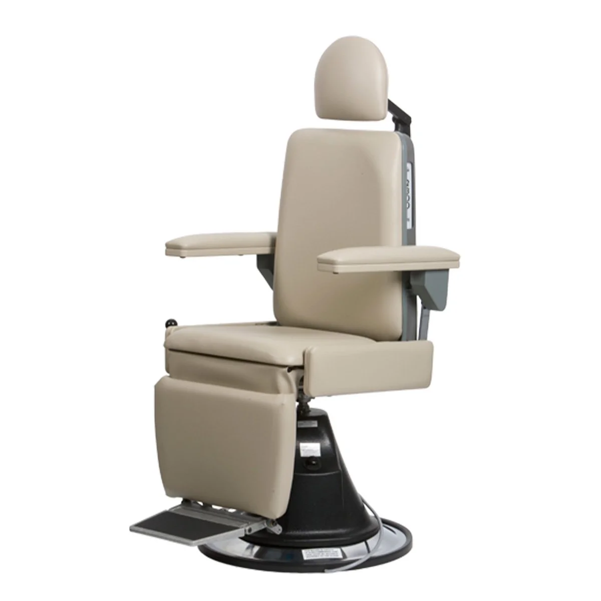The Apex 2300 Series features all the same fine construction properties found in other SMR models. An electro-hydraulic lift system and manual backrest differentiate this Apex model, making it an exceptional value. Foot-controlled electro-hydraulic lift system for reliability Manual recline backrest, spring assisted with dampening piston Leg, arm and footrests synchronized with backrest movement Swivel base with 360° rotation allows versatile positioning Heavy duty steel and cast iron skeleton provides an indestructible foundation 300 pound lift capacity Seat design comfortably accommodates patients of all sizes Articulating armrests in upright position provide close-in patient accessibility Multiple-position, articulating headrest for patient comfort and physician accessibility Flip-up footrest for convenient patient access and comfort Optional Solarlite and restraint strap Multiple headrest styles available Back brake handle can be located on either or both sides Solarlite receptacle built into base