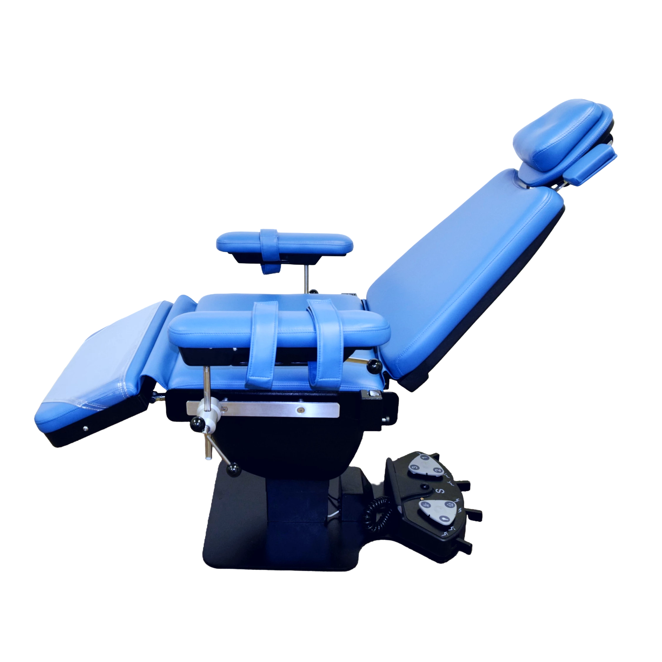 • Two 3-way switches control the one touch operation of three programmed seating preferences, return to home position and chair lock out during surgery. Four manual override levers adjust all positions independently for optimal patient positioning.
